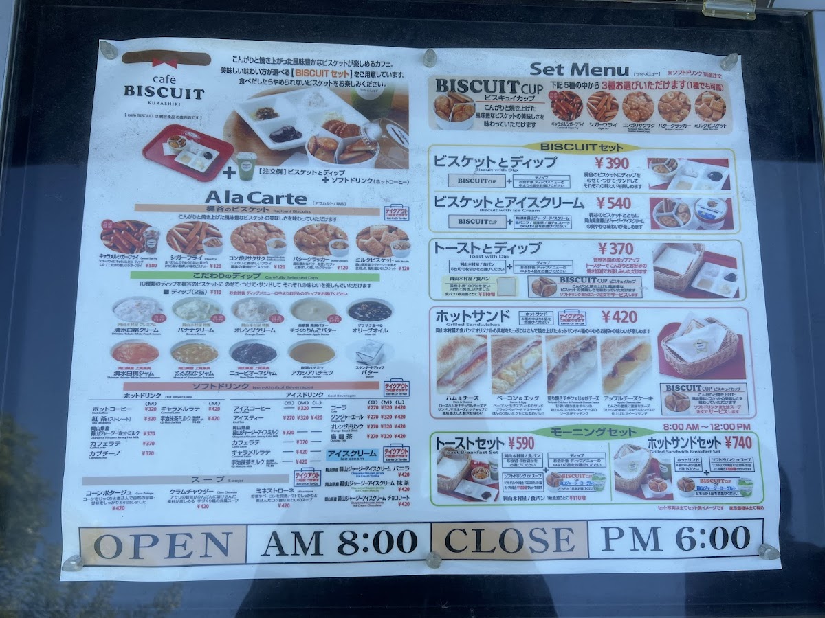 Introducing cafe BISCUIT, a charming café and confectionery nestled in the heart of Kurashiki, Okayama. This delightful spot invites you to indulge in a unique breakfast experience where biscuits take center stage. Each breakfast set features a selection of fresh biscuits, buttery toast, and your choice of coffee or tea, lovingly prepared to suit your preference.
